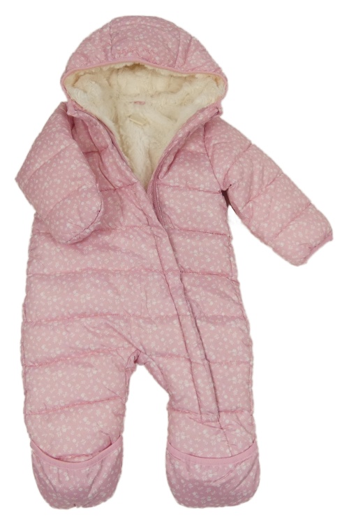 Svetloružová -biela kvetovaná šušťáková zimná kombinéza s kapucňou Pocopiano
