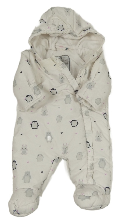 Biela šušťáková zimná kombinéza so zvieratkami a kapucňou Topomini