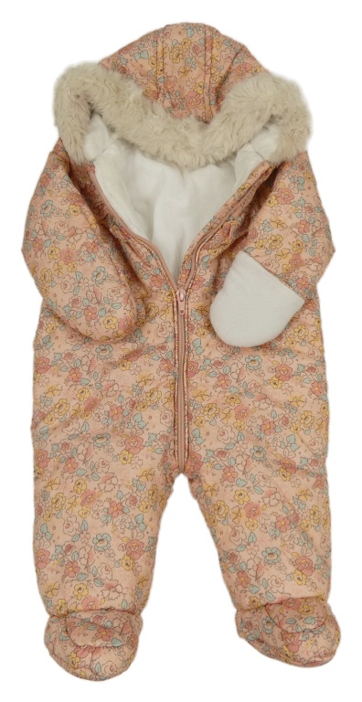 Ružová kvetovaná šušťáková zimná kombinéza s kapucňou George
