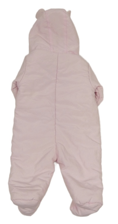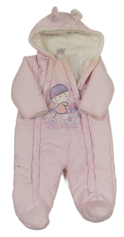 Ružová šušťáková zimná kombinéza s mačičkou a kapucňou