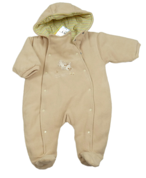 • Nové - Béžová fleecová zateplená kombinéza s krávou a kapucňou