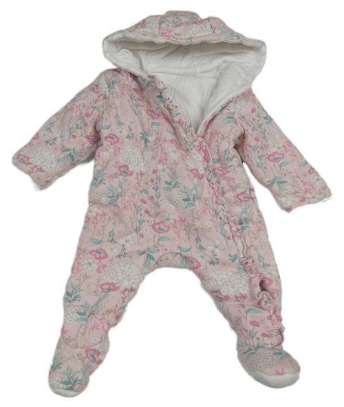 Ružová kvetovaná tepláková zateplená kombinéza s kapucňou Miniclub