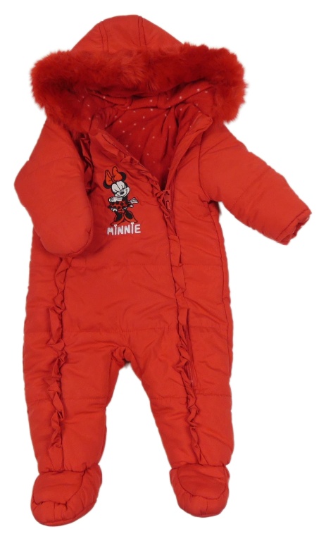 Červená šušťáková zimná kombinéza s Minnie a kapucňou George