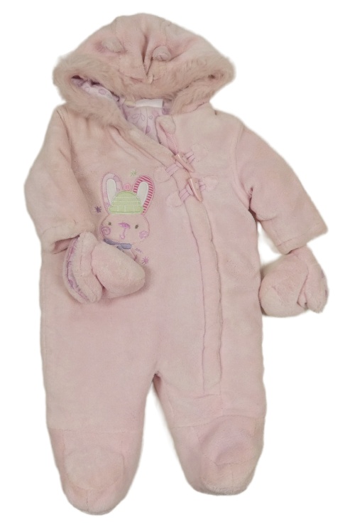 Ružová chlpatá zateplená kombinéza s králikom a kapucí + rukavice