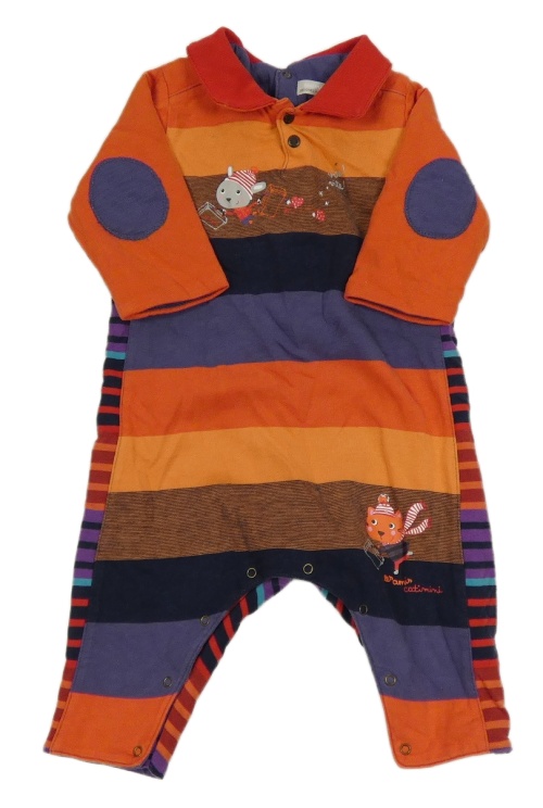 • Pruhovaná zateplená kombinéza so zvieratkami a golierikom catimini
