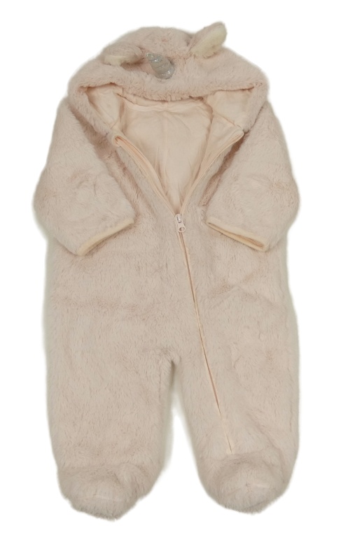 Svetloružová kožušinová podšitá kombinéza s kapucí - jednorožec M&S