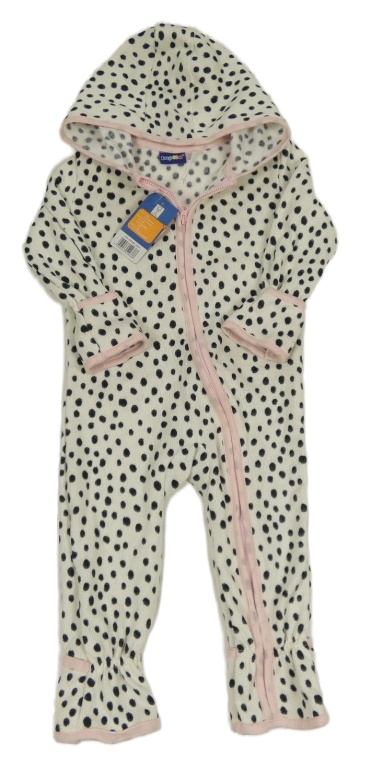 Nové - bielo-čierno-svetloružová bodkovaná á pletená kombinéza s kapucňou lupilu