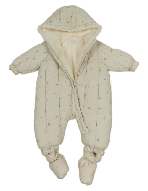 Smotanová vzorovaná šušťáková zimná kombinéza s kapucňou Zara