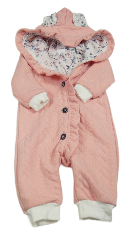 Svetloružová 3D vzorovaná podšitá kombinéza s kapucňou