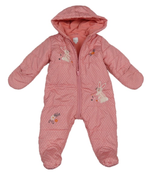 Ružová šušťáková bodkovaná á zimná kombinéza so zajačikmi a kapucňou Bluezoo