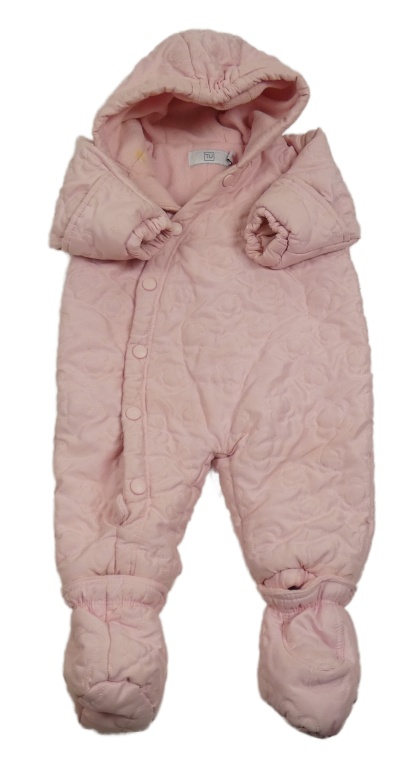 Svetloružová šušťáková prešívaná zimná kombinéza s kapucňou Tu