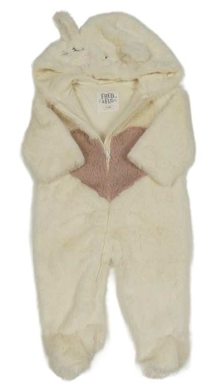 Smotanová kožušinová podšitá kombinéza so srdiečkom a kapucňou F&F