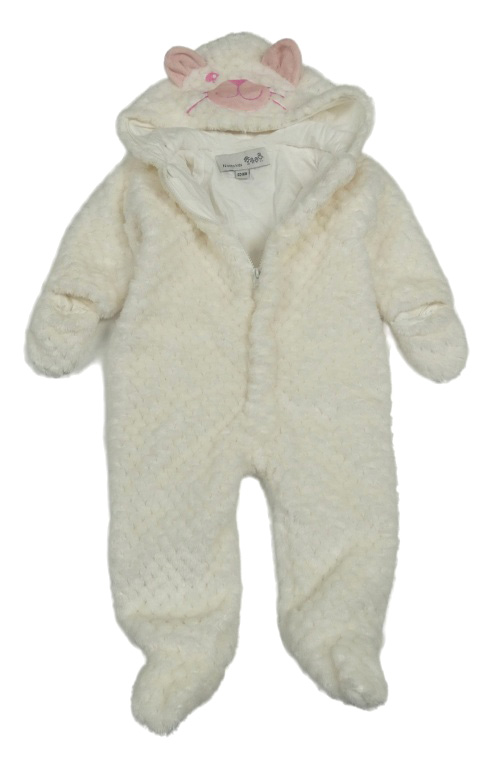 Smotanová vzorovaná chlpatá podšitá kombinéza s kapucí - mačka