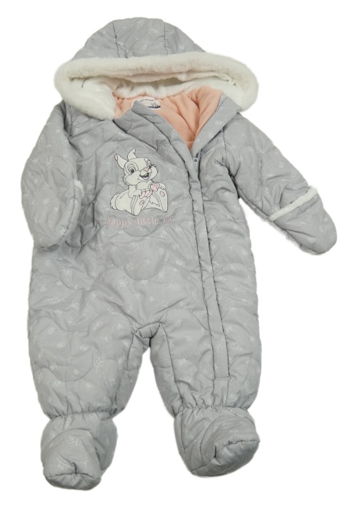 • Nové - sivá prešívaná šušťáková zimná kombinéza so zajíčkem Thumperem a kapucňou s kožešinou C&A