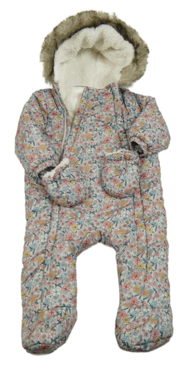 Sivo-farebná kvetovaná šušťáková zimná kombinéza s kapucí + rukavice F&F