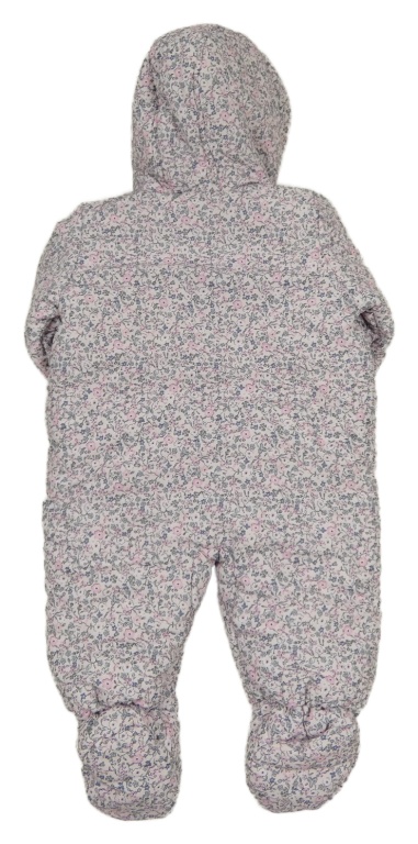Svetloružová kvetinová šušťáková zimná kombinéza s kapucí+ rukavice Mothercare