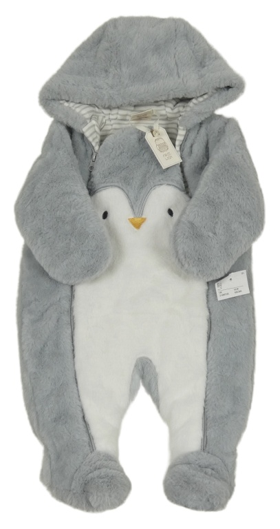 • Nové - sivo-biela chlpatá podšitá kombinéza s tučňákem a kapucňou