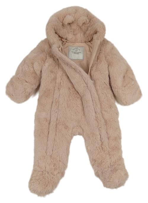 Svetloružová kožušinová zateplená kombinéza s kapucňou George