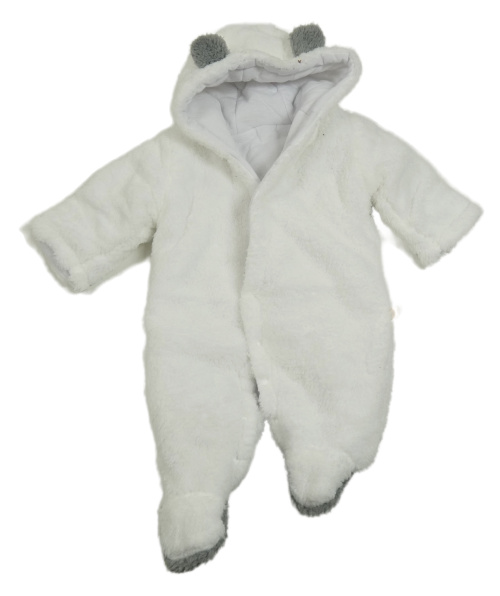 • Bílp-sivá huňatá zateplená kombinéza s kapucňou s uškami