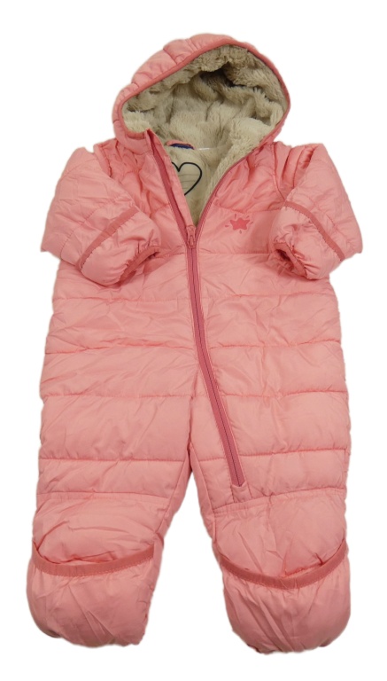 Ružová prešívaná šušťáková zimná kombinéza s hviezdičkou a kapucňou lupilu