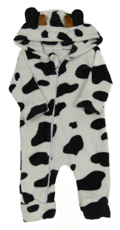 • Bielo-čierna vzorovaná chlpatá kombinéza s kapucí - kravička