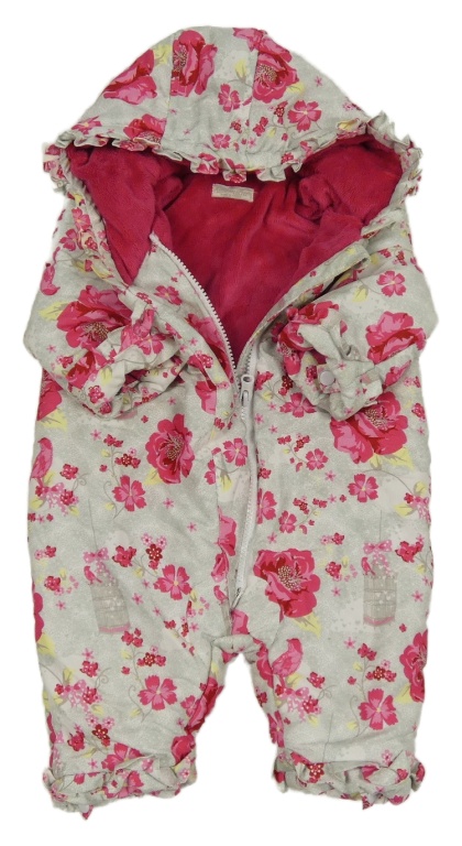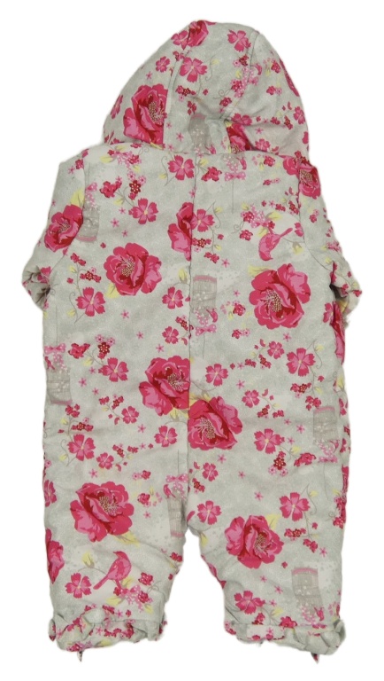 Sivá šušťáková zimná kombinéza s kvetmi a kapucňou