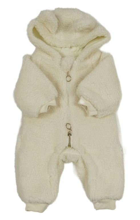 • Biela huňatá zateplená kombinéza s kapucňou s uškami