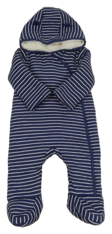 Tmavomodro-biela pruhovaná zateplená kombinéza s kapucňou s uškami F&F