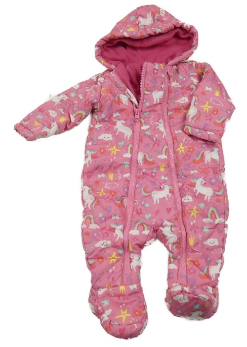 Ružová šušťáková zimná kombinéza s jednorožcami a kapucňou St. Bernard