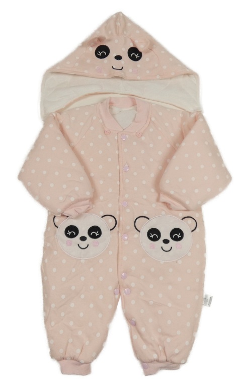 Svetloružová tepláková zateplená kombinéza s pandami a odopínacíá kapucňou