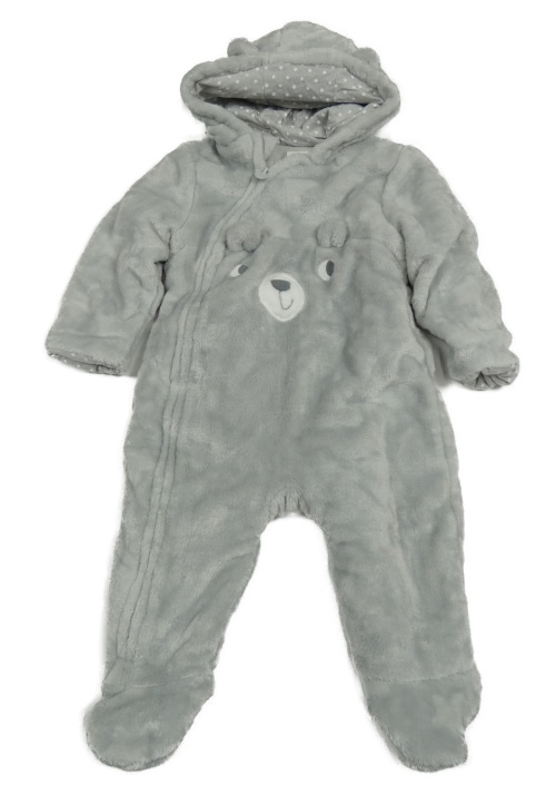 Sivá chlpatá zateplená kombinéza s medvedíkom a kapucňou C&A