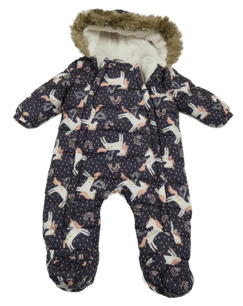 Sivá šušťáková prešívaná zimná kombinéza s jednorožcami a kapucňou F&F