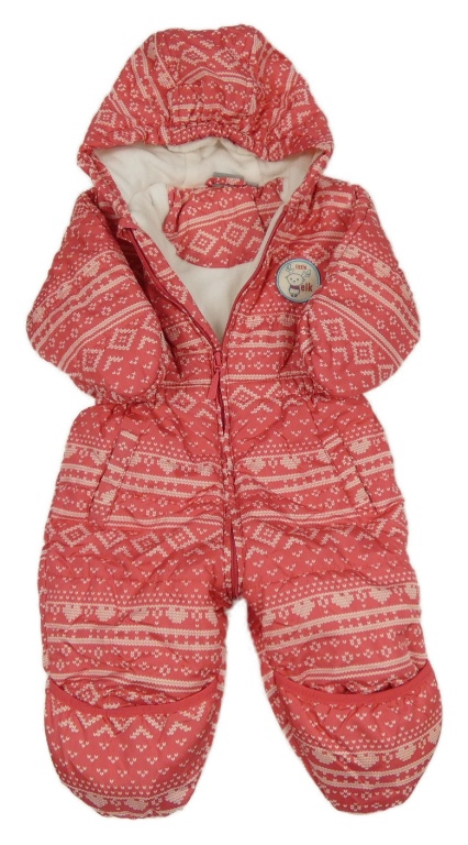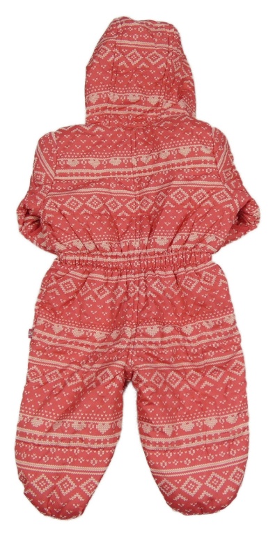 • Jahodová vzorovaná šušťáková zimná kombinéza s nášivkou a srdiečkami a kapucňou impidimpi