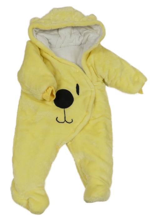• Žltá chlpatá zateplená kombinéza s ňufáčikom a kapucňou
