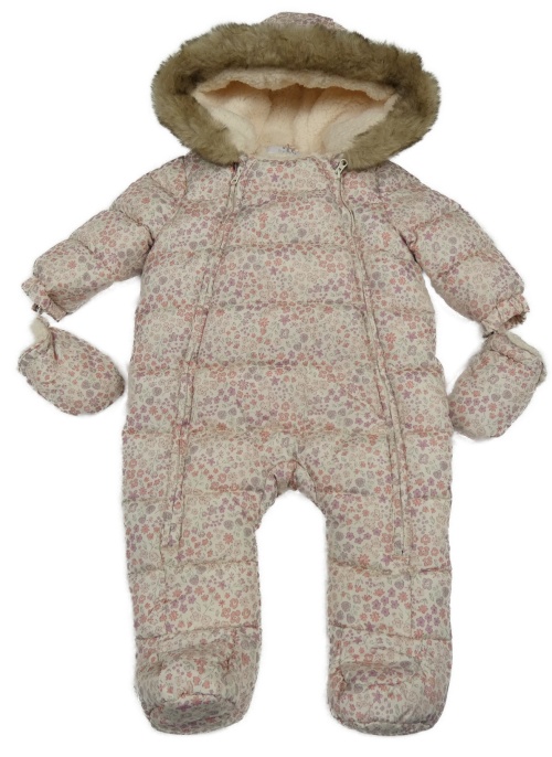 Béžová kvetovaná šušťáková zimná kombinéza s kapucí + rukavice F&F