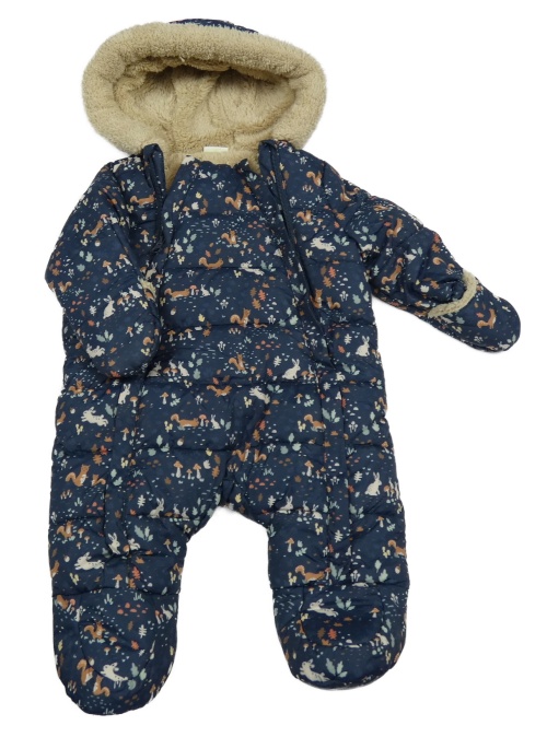 Tmavomodrá prešívaná šušťáková zimná kombinéza so zvieratkami a houbičkami a kapucňou TAPE 'A L'OEIL