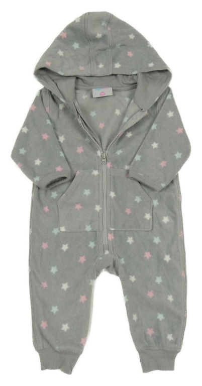 Sivá fleecová kombinéza s hviezdičkami a kapucňou Topomini