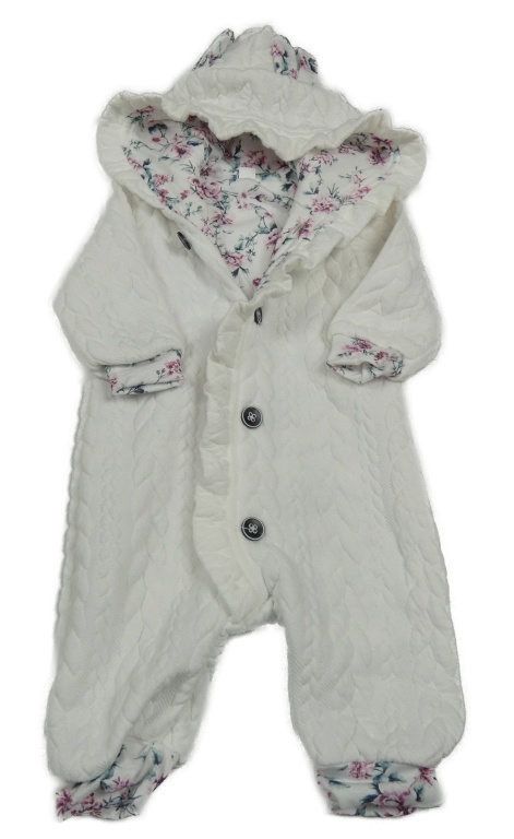 Biela 3D vzorovaná podšitá kombinéza s kapucňou