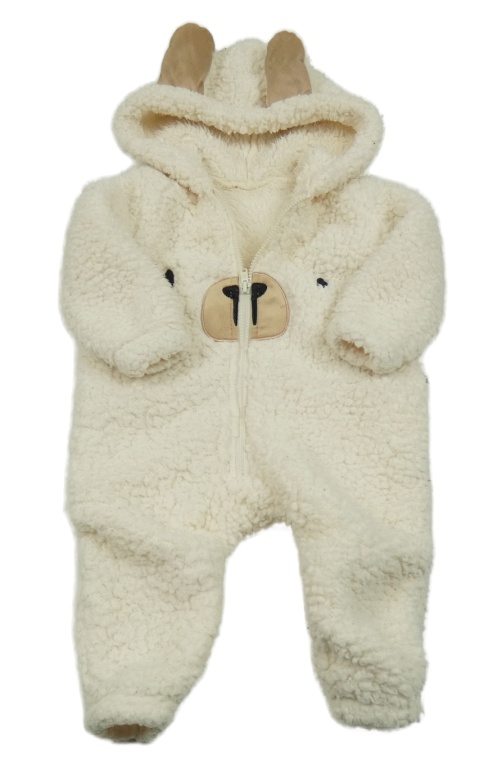• Smotanová huňatá kombinéza s medvedíkom a kapucňou s uškami SHEIN