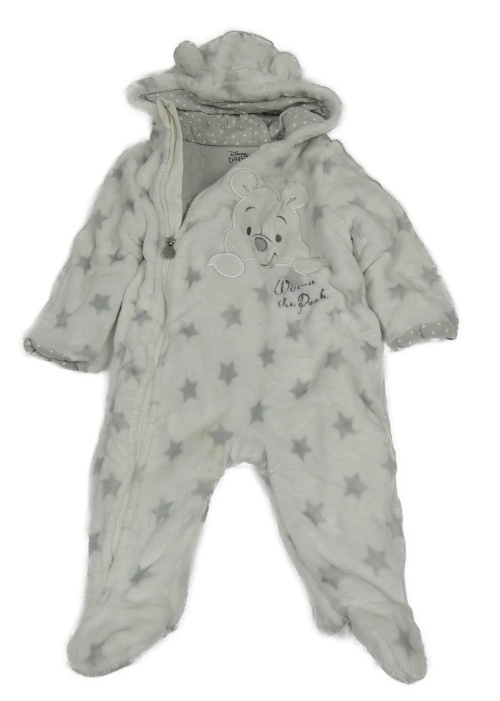 • Biela plyšová zateplená kombinéza s Pú a hviezdičkami a kapucňou s uškami C&A