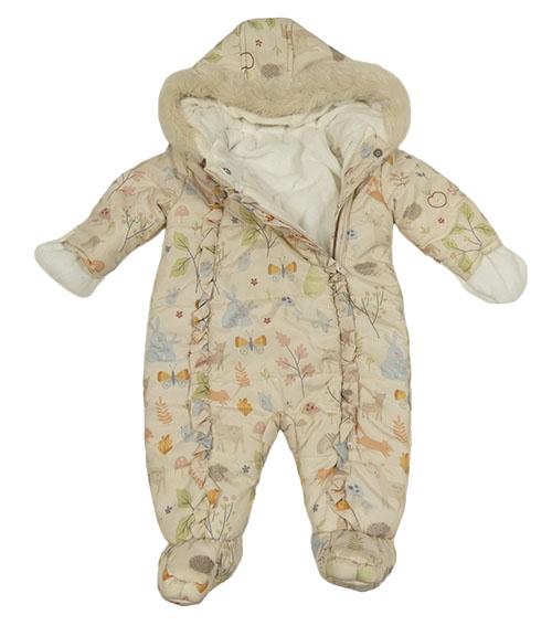 Béžová šušťáková zimná kombinéza so zvířaty a kapucňou George