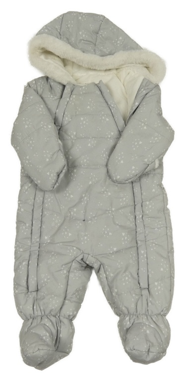 • Svetlosivá prešívaná šušťáková zimná kombinéza so srdiečkami a kapucňou s kožešinou C&A