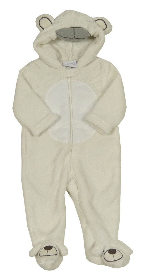 Smotanová chlpatá kombinéza s kapucí - medvěď