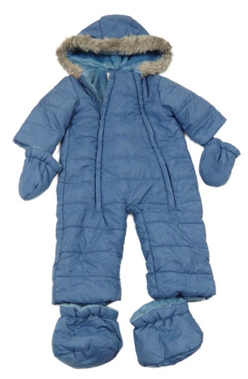 Modrá bodkovaná á šušťáková zimná kombinéza s kapucí + topánky