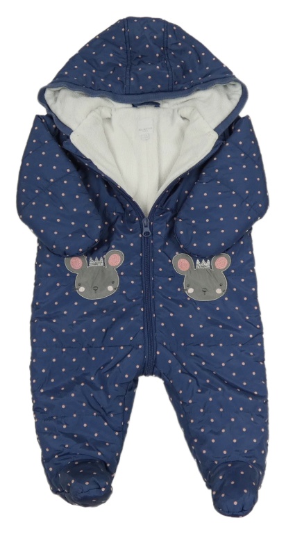 Tmavomodrá bodkovaná á šušťáková zimná kombinéza s myškami a kapucňou Bluezoo