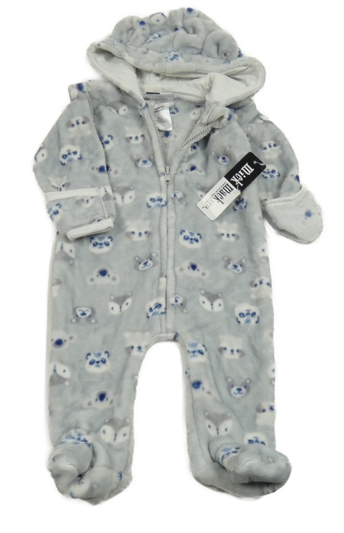 Nové - Sivá chlpatá kombinéza so zvieratkami a kapucňou Mick Mack