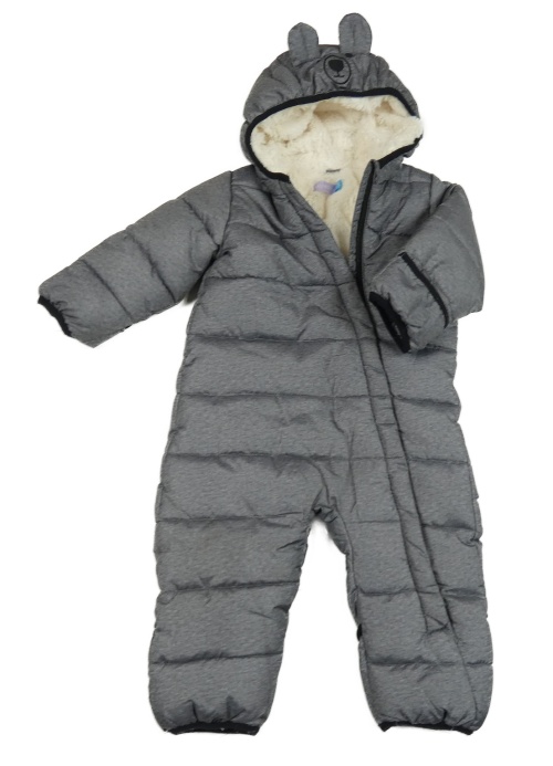 • Tmavošedo melírovaná prešívaná šušťáková zimná kombinéza s kapucí - medvedík Lily & Dan
