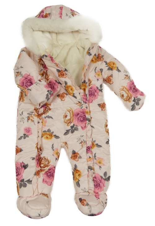 Svetloružová šušťáková zimná kombinéza s kvetmi a kapucňou George