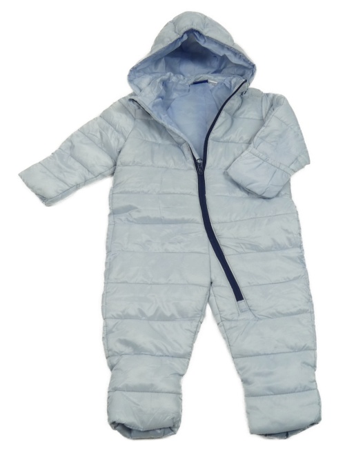Svetlomodrá prešívaná šušťáková zimná kombinéza s odopínacíá kapucňou lupilu