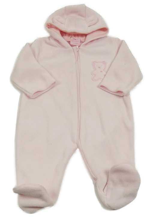 Svetloružová fleecová kombinéza s medvedíkom a kapucňou